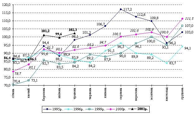 обсяг роздрібного товарообороту у березні, квітні та травні 2001р. перевищив