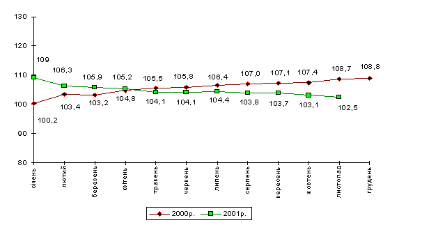 рівень січня-листопада 2000р. на 3,3 % і становила 9,6 тис. одиниць.