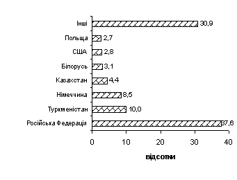 надходження здійснювались з Російської Федерації – 37,6%, Туркменістану – 10,