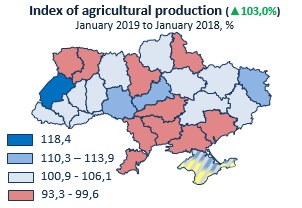 Indices of agricultural production by regions in January 2019