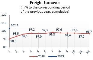 Indices for production in construction in 2019 (to the relevant period of the previous year)