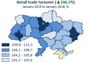 Regional structure of retail trade turnover in January 2019
