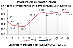 Indices of construction output in January 2019