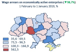 Wage arrears rates, by region (beginning of 1997-2019)