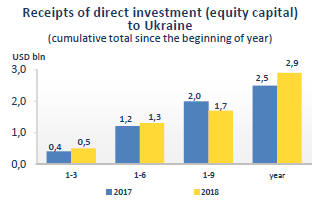 Receipts of direct investment (equity capital) in Ukraine in 2018