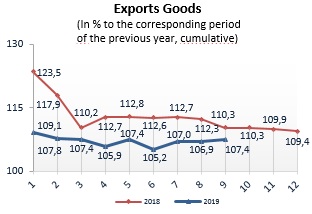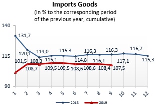 Consumer price indices for goods and services in 2019 (to corresponding period of previous year)