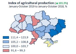 Indices of agricultural production by regions in January-October 2019