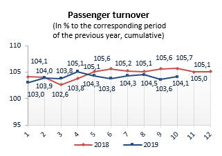 Indices for production in construction in 2019 (to the relevant period of the previous year)