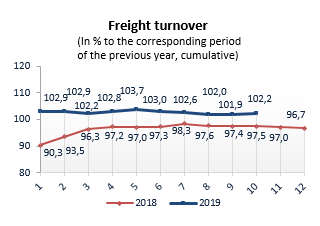 Freight shipped by rail, January-October 2019