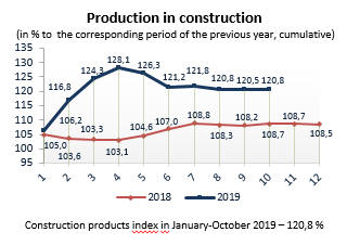 Indices of construction output in January-October 2019