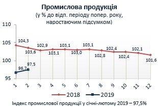 Виробництво промислової продукції за видами у січні-лютому 2019 року