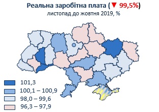 заробітної плати по регіонах у 2019 році, % до відповідного місяця