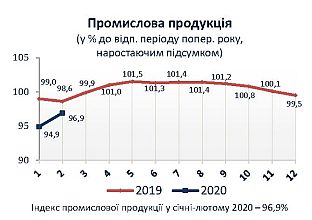 продукції у 2020 році (до відповідного періоду попереднього року)