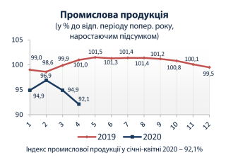 продукції у 2020 році (до відповідного періоду попереднього року)