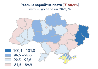 заробітної плати по регіонах у 2020 році, % до відповідного місяця