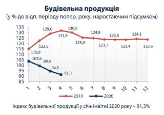 Індекси будівельної продукції у 2020 році (до відповідного періоду попереднього року)