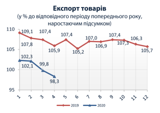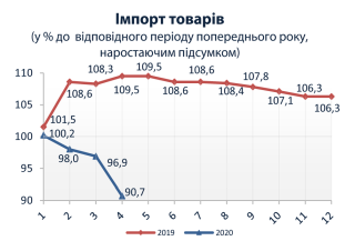 Індекси споживчих цін на товари та послуги у 2020 році (до відповідного місяця попереднього року)
