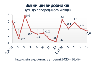 Індекси цін виробників промислової продукції у травні 2020 року (до попереднього місяця)