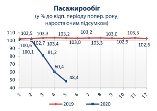 Пасажирообіг за видами транспорту за січень-травень 2020 року