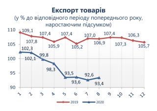 на товари та послуги у 2020 році (до відповідного періоду попереднього