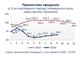 продукції у 2020 році (до відповідного періоду попереднього року)