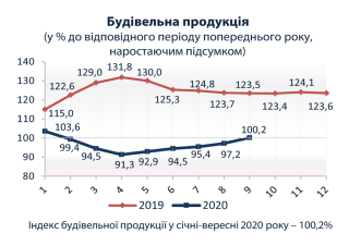 Виробництво будівельної продукції у січні–вересні 2020 року