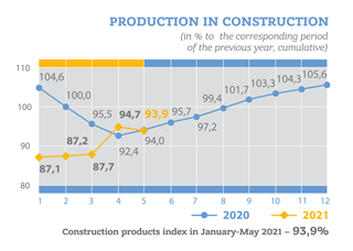 Volume of construction production by type by region in January-May 2021