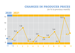 Industrial producer price indices in November 2021 (to corresponding month of previous