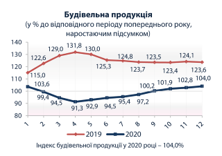 Індекси будівельної продукції по регіонах у 2020 році (до відповідного періоду