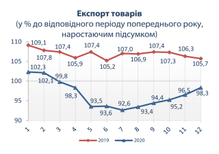 продукції у 2020 році (до відповідного періоду попереднього року)