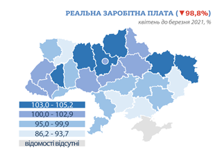 заробітної плати по регіонах у 2021 році, % до відповідного місяця