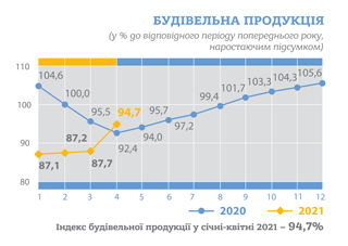 Виробництво будівельної продукції в січні–квітні 2021 року 28.05.2021