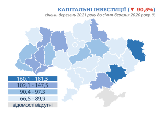 Обсяг реалізованої промислової продукції по регіонах у січні-березні 2021 року