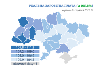 Індекси реальної заробітної плати за регіонами у 2021 році, у % до відповідного періоду попереднього року