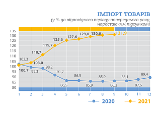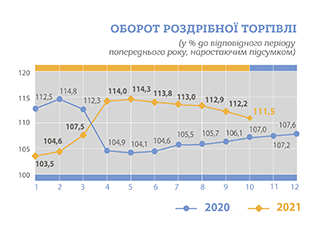 Індекси споживчих цін на товари та послуги у 2021 році (до відповідного місяця попереднього року)
