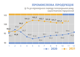 продукції у 2021 році (до відповідного періоду попереднього року)