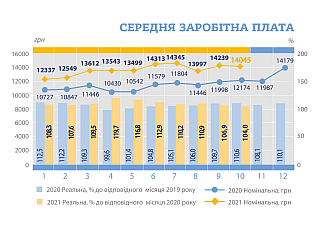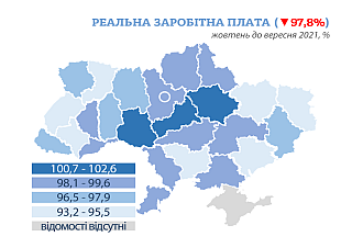 заробітної плати по регіонах у 2021 році, % до відповідного місяця