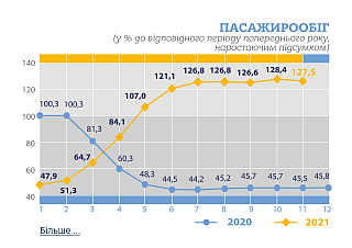 Кількість перевезених пасажирів за видами транспорту 2021 рік