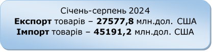 Зовнішня торгівля України товарами за січень–серпень 2024 року
