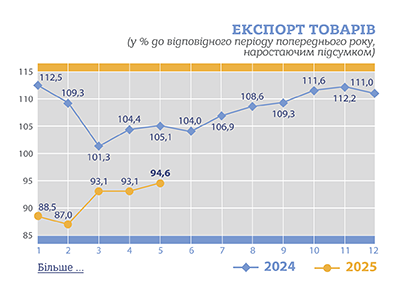 16.07.2025 Зовнішня торгівля України товарами за січень-травень 2025 року 15.07.2025 УВАГА! Оприлюднено інформацію, термін публікації якої (11.06.2025) був перенесений у зв'язку з воєнним станом