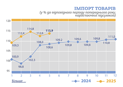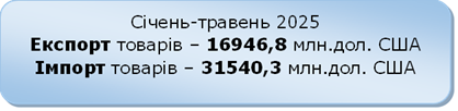 товарною структурою зовнiшньої торгiвлi за сiчень-травень 2025 року