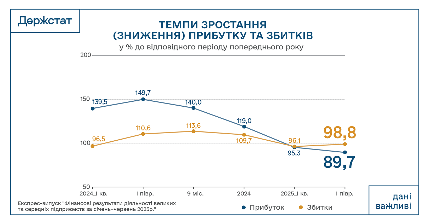 Новини 29.08.2025 Фінансові результати діяльності великих та середніх підприємств за січень-червень 2025 року