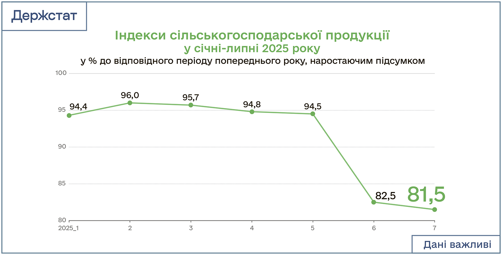 на житло у 2025 році (до відповідного періоду попереднього року) 19.08.2025 Індекс сільськогосподарської продукції у січні-липні 2025 року