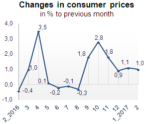 Price indices for construction and assembly operations in 2017 (to previous month)