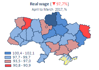 Average monthly wages and salaries by region, from the beginning of year, 2017