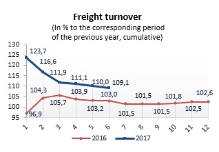 Tariff indices for cargo transportation by rail in 2017