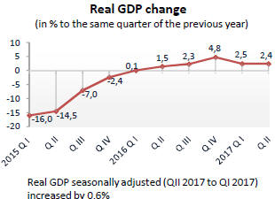 type of economic activity for 2017 (to corresponding quarter of previous year)
