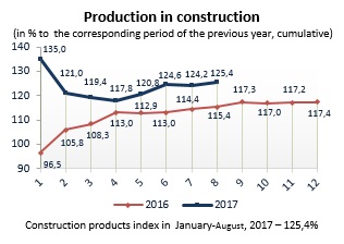 Indices for production in construction in January-August 2017
