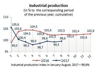 Index of industrial production, by types of activity for January-August 2017