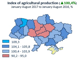 Indices of agricultural production by regions in January-August 2017
